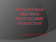 ФИНАНСОВАЯ СИСТЕМА РЕСПУБЛИКИ КАЗАХСТАН Подготовил Кулекин Рустам ФР-22