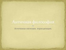 Античная философия Источники изучения периодизация АНТИЧНАЯ ФИЛОСОФИЯ