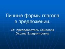 Личные формы глагола в предложении Ст преподаватель Соколова