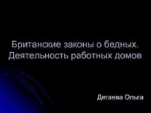 Британские законы о бедных Деятельность работных домов Дегаева