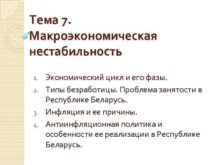 Тема 7 Макроэкономическая нестабильность Экономический цикл и его