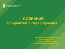 СОБРАНИЕ аспирантов 2 года обучения Докладчик начальник отдела