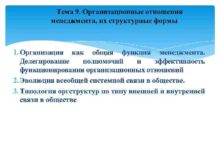Тема 9 Организационные отношения менеджмента их структурные формы