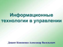 Информационные технологии в управлении Доцент Кононенко Александр Васильевич