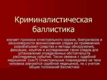 Криминалистическая баллистика изучает признаки огнестрельного оружия боеприпасов и
