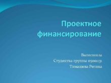 Проектное финансирование Выполнила Студентка группы 05001131 Тимашева Регина