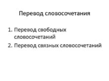 Перевод словосочетания 1 Перевод свободных словосочетаний 2 Перевод