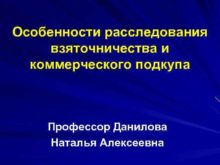 Особенности расследования взяточничества и коммерческого подкупа Профессор Данилова