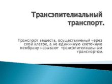 Трансэпителиальный транспорт Транспорт веществ осуществляемый через слой клеток