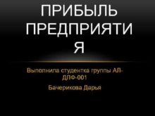 ПРИБЫЛЬ ПРЕДПРИЯТИ Я Выполнила студентка группы АЛДЛФ-001 Бачерикова