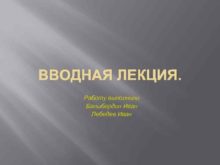 ВВОДНАЯ ЛЕКЦИЯ Работу выполнили Балыбердин Иван Лебедев Иван