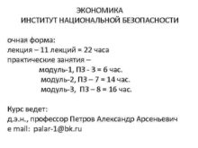 ЭКОНОМИКА ИНСТИТУТ НАЦИОНАЛЬНОЙ БЕЗОПАСНОСТИ очная форма лекция