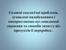 Головні екологічні проблеми зумовлені видобуванням і використанням вуглеводневої