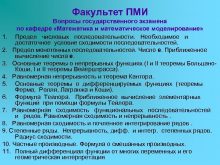 Факультет ПМИ Вопросы государственного экзамена по кафедре Математика
