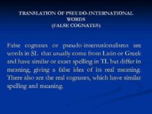 TRANSLATION OF PSEUDO-INTERNATIONAL WORDS FALSE COGNATES False cognates