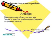 Анализ электронного учебника Алгебра Образовательная область математика Предметы