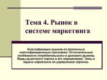 Тема 4 Рынок в системе маркетинга Классификация рынков