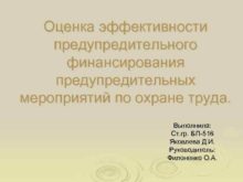 Оценка эффективности предупредительного финансирования предупредительных мероприятий по охране