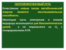 ПЕНТОЗОФОСФАТНЫЙ ПУТЬ Качественно новым типом метаболической энергии является