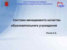 Система менеджмента качества образовательного учреждения Панов Н А