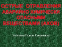 ОСТРЫЕ ОТРАВЛЕНИЯ АВАРИЙНО ХИМИЧЕСКИ ОПАСНЫМИ ВЕЩЕСТВАМИ АХОВ Чельцова