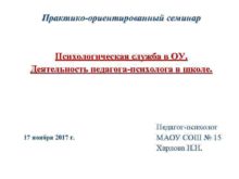 Практико-ориентированный семинар Психологическая служба в ОУ Деятельность педагога-психолога