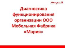 Диагностика функционирования организации ООО Мебельная Фабрика Мария