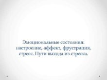 Эмоциональные состояния настроение аффект фрустрация стресс Пути выхода