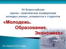 XV Всероссийская научно практическая конференция молодых ученых аспирантов