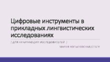Цифровые инструменты в прикладных лингвистических исследованиях ДЛЯ
