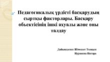 Педагогикалық үрдісті басқарудың сыртқы факторлары Басқару обьектісінің ішкі