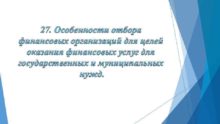 27 Особенности отбора финансовых организаций для целей оказания