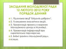ЗАСІДАННЯ МОЛОДІЖНОЇ РАДИ 12 ЛЮТОГО 2012 РОКУ ПОРЯДОК