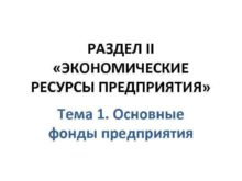 РАЗДЕЛ II ЭКОНОМИЧЕСКИЕ РЕСУРСЫ ПРЕДПРИЯТИЯ Тема 1 Основные