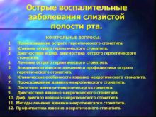 Острые воспалительные заболевания слизистой полости рта КОНТРОЛЬНЫЕ ВОПРОСЫ