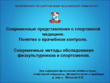 ЗАПОРОЖСКИЙ ГОСУДАРСТВЕННЫЙ МЕДИЦИНСКИЙ УНИВЕРСИТЕТ Современные представления о спортивной