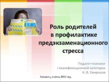 Роль родителей в профилактике предэкзаменационного стресса Педагог-психолог I