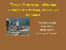 Тема Оползни обвалы селевые потоки снежные лавины Чрезвычайные