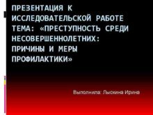 ПРЕЗЕНТАЦИЯ К ИССЛЕДОВАТЕЛЬСКОЙ РАБОТЕ ТЕМА ПРЕСТУПНОСТЬ СРЕДИ НЕСОВЕРШЕННОЛЕТНИХ