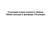 Регуляция водно-солевого обмена Обмен кальция и фосфора Регуляция