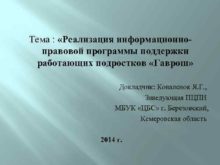 Тема Реализация информационноправовой программы поддержки работающих подростков