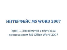 ИНТЕРФЕЙС MS WORD 2007 Урок 1 Знакомство с