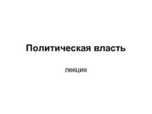 Политическая власть лекция Политическая власть ПЛАН лекции