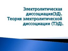Электролитическая диссоциация ЭД Теория электролитической диссоциации ТЭД Вещества