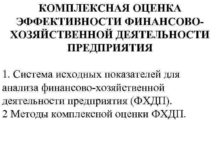 КОМПЛЕКСНАЯ ОЦЕНКА ЭФФЕКТИВНОСТИ ФИНАНСОВОХОЗЯЙСТВЕННОЙ ДЕЯТЕЛЬНОСТИ ПРЕДПРИЯТИЯ 1 Система