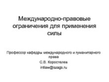 Международно-правовые ограничения для применения силы Профессор кафедры международного