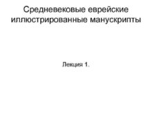 Средневековые еврейские иллюстрированные манускрипты Лекция 1 Классификация