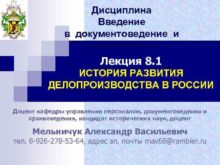 Дисциплина Введение в документоведение и архивоведение Лекция 8
