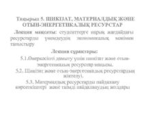 Тақырып 5 ШИКІЗАТ МАТЕРИАЛДЫҚ ЖӘНЕ ОТЫН-ЭНЕРГЕТИКАЛЫҚ РЕСУРСТАР Лекция