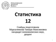 Cтатистика 12 Слайды подготовила Мурсалимова Тамара Максимовна кандидат